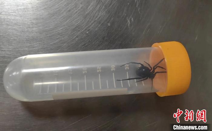 近日,天津海关所属机场海关在进境快件包装中截获一只蜘蛛,经天津海关动植物与食品检测中心技术鉴定,确定该蜘蛛为昏寇蛛(Latrodectushesperus)。 (天津海关供图)