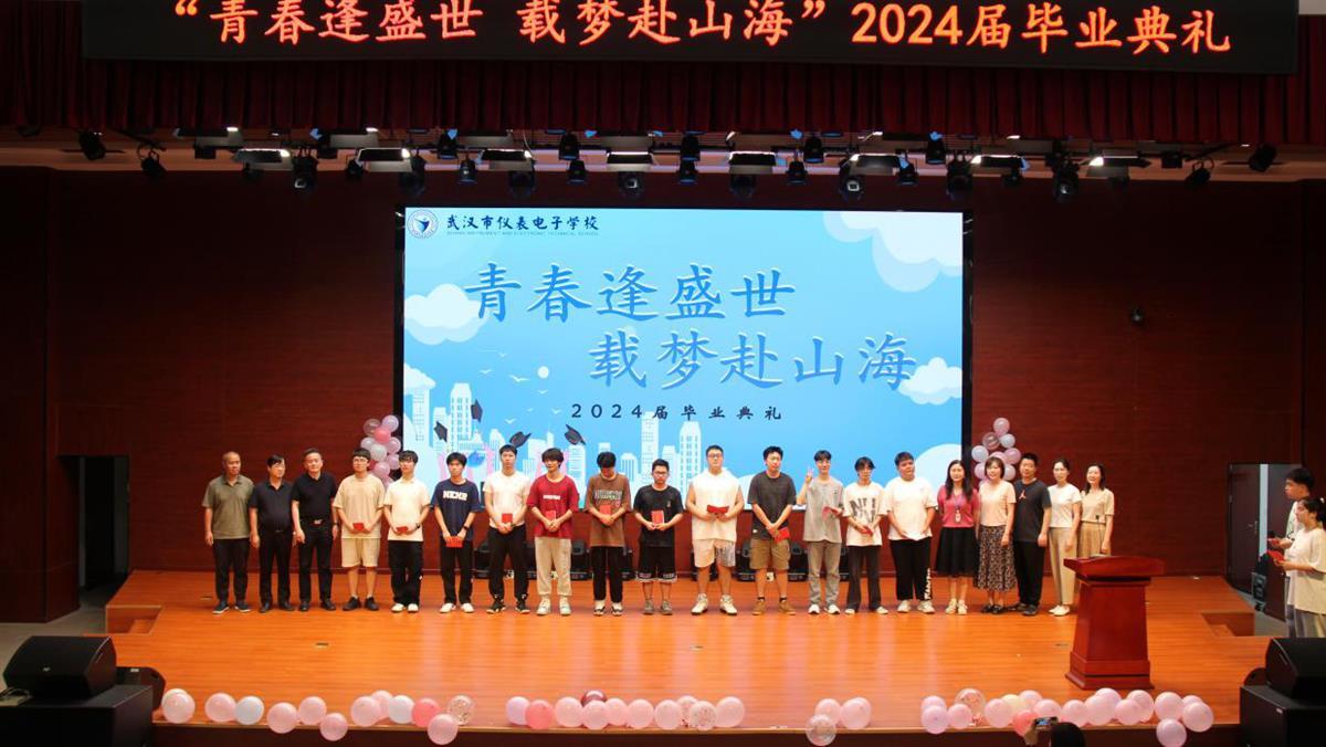 上午10时许,武汉市仪表电子学校“青春逢盛世,载梦赴山海”2024届毕业典礼在一号报告厅隆重举行。在满载回忆的歌声中,全体毕业生依次上台,领取毕业证书。
