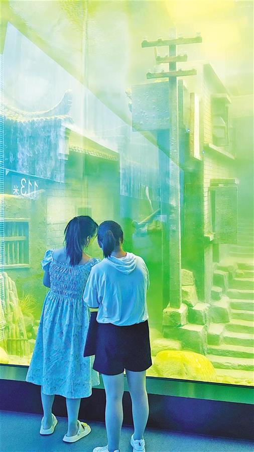 “水下归州”展厅约600立方米,水深4米。这个水下展厅通过浮雕、灯光、声像、投影等手段,微缩还原了古镇一角的建筑与民俗。