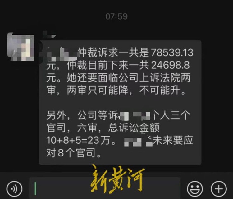 针对仲裁的员工,公司负责人在群里发布的信息。受访者供图