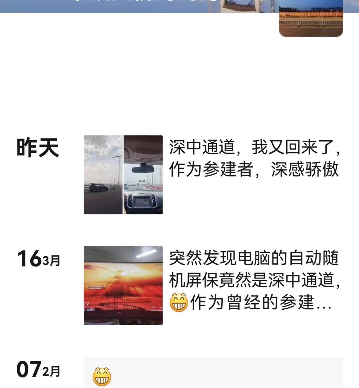 7月1日上午,驱车走在深中通道上,刘海浪现场拍摄了两张桥面的照片,发布了一条微信朋友圈。2023年,在深中通道项目工作三年后被调往其他项目,直到深中通道通车,他又赶回来看看。