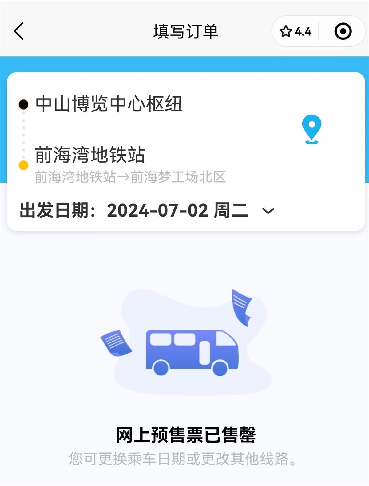7月2日,极目新闻记者登录深中跨市公交专线小程序,发现两天内中山往深圳的车票都已经被订购完毕,到4日之后才有余票。