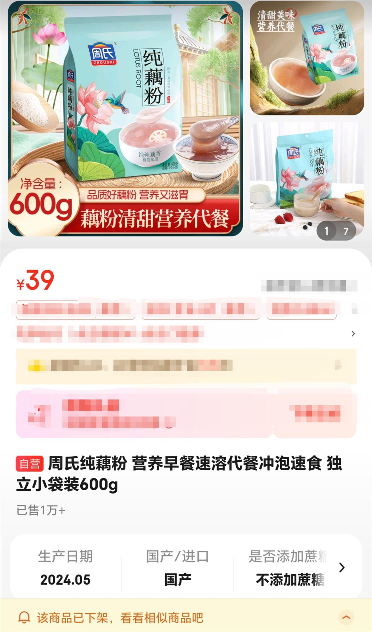 记者也随机咨询了多家线下连锁超市,工作人员表示,周氏的藕粉销量不错,店里库存不多了。暂未接到商品下架通知,目前正常售卖。