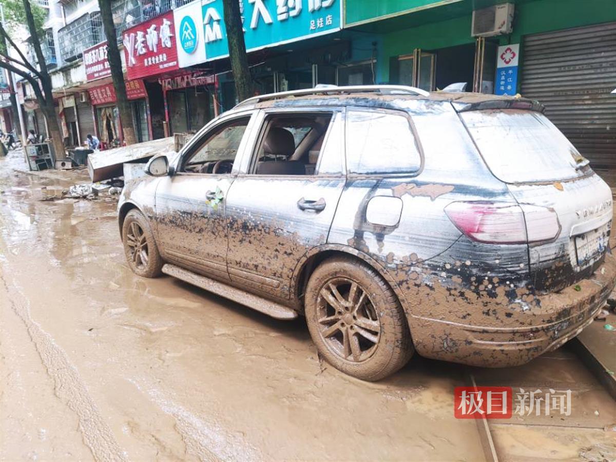 西街上一辆被洪水泡过的车辆