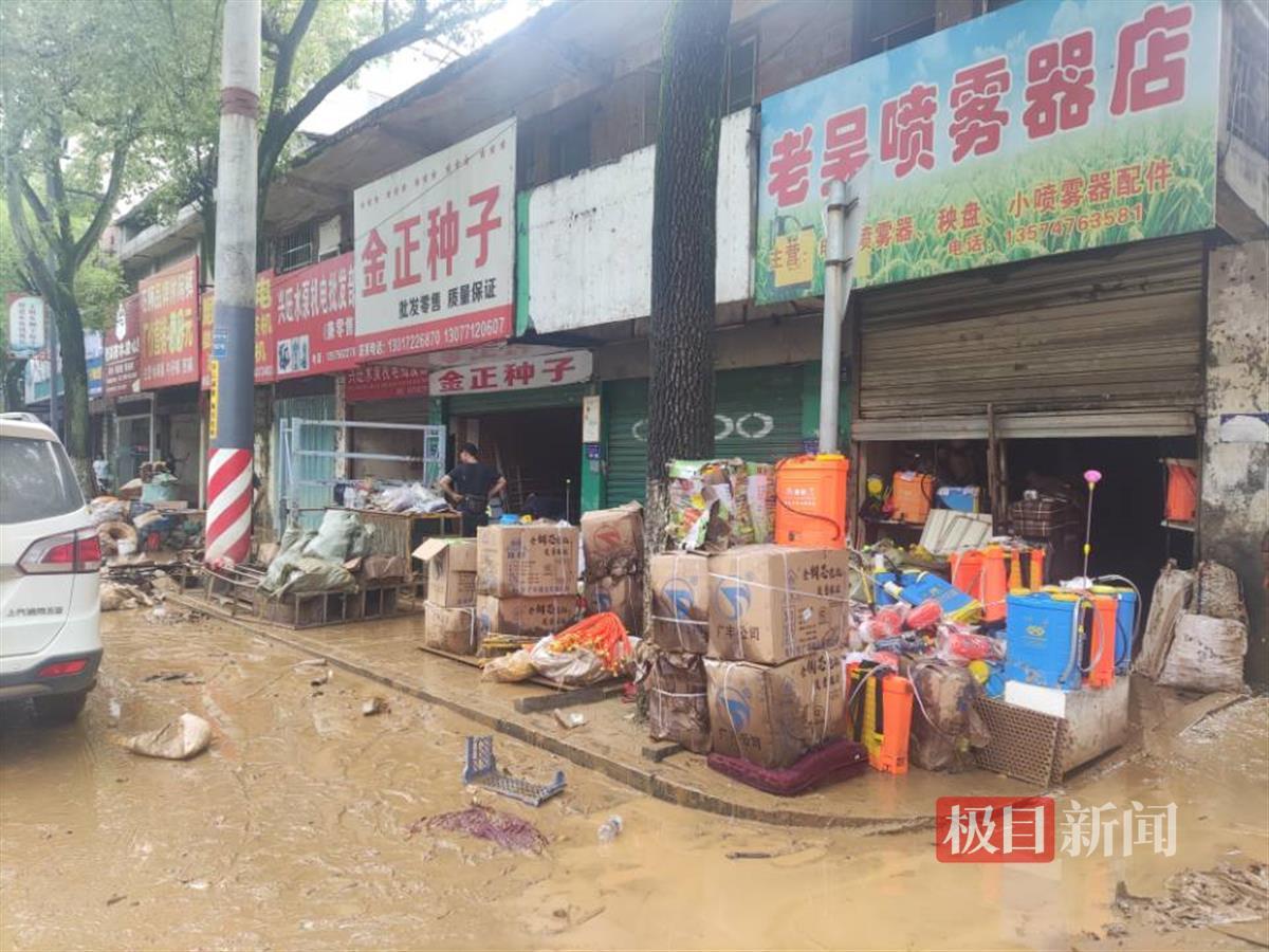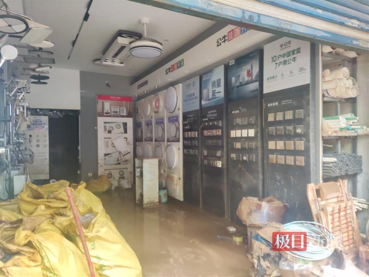 西街两侧的商户在本次洪灾中受损较为严重,商铺的一层基本被洪水淹没,大量货品和设备被浸泡受损。