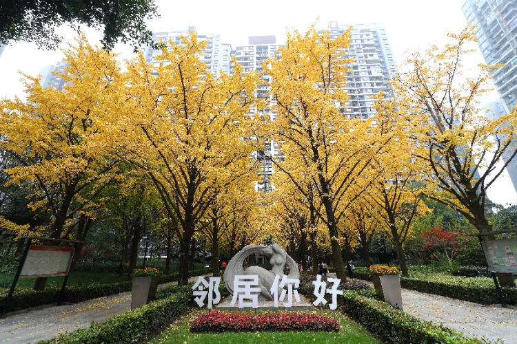 在小区中庭,有一条种有34棵高大银杏树的“金色大道”,每年秋季银杏叶黄时都会吸引不少业主在这里拍照打卡。金科服务不仅贴心地待银杏叶落下3—5天后再做清扫,为大家留足“打卡”时间,更进一步为“金色大道”添置了四季海棠、九重葛等花植。即便在银杏未黄的季节,这里也能花色繁华,生机盎然。