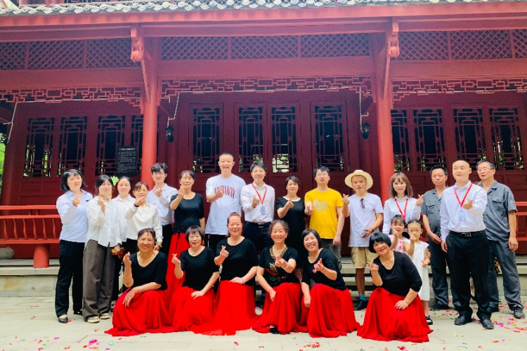在东方雅郡八角亭复开仪式上,业主与金科服务合影