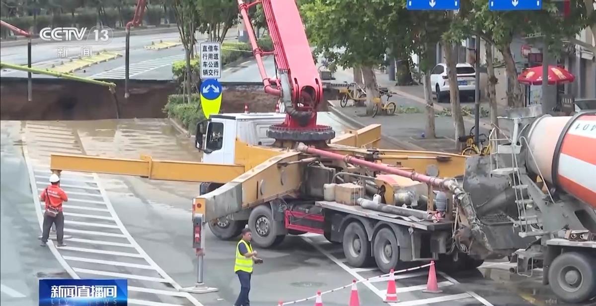 塌陷后施工现场(图源:央视新闻)