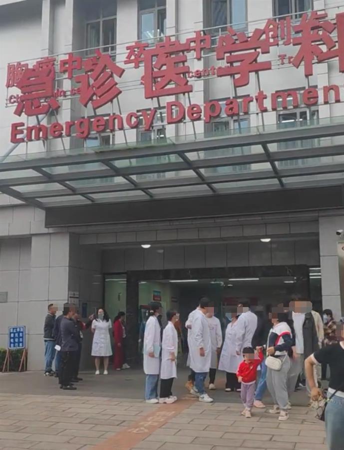 网友发布的视频显示,拍摄地在急诊医学科。视频发布者在评论区回复网友称,有人从高处坠落后砸伤了一名老人。