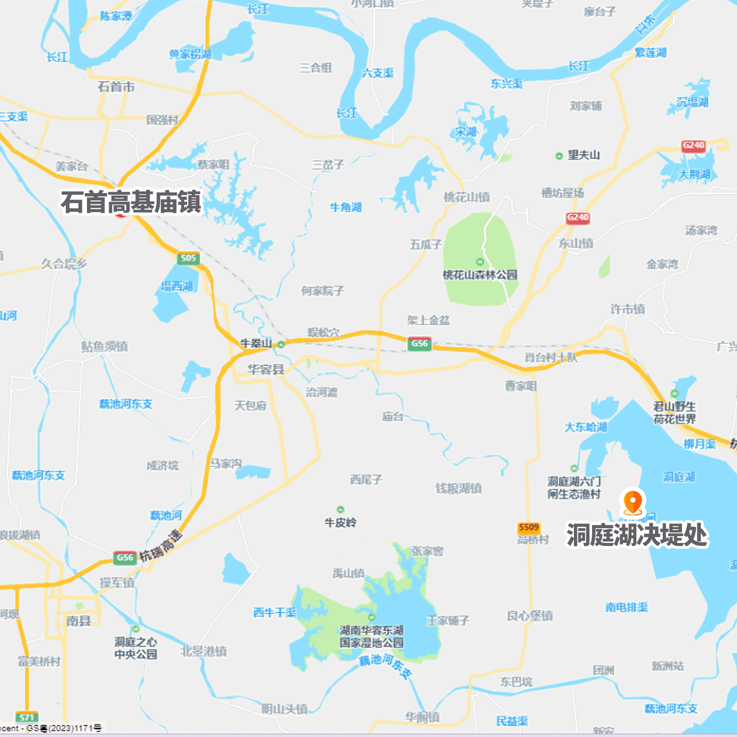 华容县位于湖南省北部边陲,岳阳市西境,与湖北石首市、监利市接壤。根据百度地图显示,本次决堤处距离湖北监利尺八镇直线距离仅26.1公里,开车时间最短时间仅需2小时20分钟;距离石首桃花山镇直线距离仅27.2公里,开车最短时间仅需一小时22分钟。