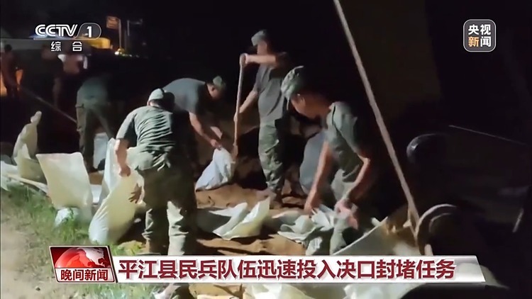 14公里长的间堤上,有一支来自湖南平江县的民兵队伍。在上一轮暴雨中,平江遭受严重洪涝灾害,他们最先冲入汹涌的洪水中,一天转移数百名群众。刚刚结束平江的灾后清理工作,又马不停蹄地赶到这里,100多名战士立即打包运送沙石,加固间堤防护,连续作战、通宵值守。