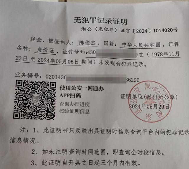 陈俊杰向红星新闻讲述,这次因大儿子在校申请入党,5月6日去老家衡东县新塘派出所打政审材料,才得知陈俊杰案底依然存在。番禺区桥南派出所随后派专人负责跟进此事,并开具了无犯罪记录证明。但二儿子高考填报志愿时,因“犯罪记录”,一些学校志愿无法正常填报。陈俊杰夫妇不断询问进展,希望尽快撤销。“警方无法确定案底何时能给我们撤销,让我们问法院。”陈俊杰表示自己有些无助。