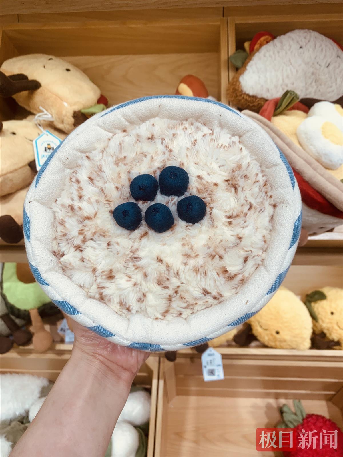 7月9日,极目新闻记者走访了武昌万象城一家玩具精品店,发现一款三明治造型的玩具上,还有裹着酱料的番茄和芝士片,旁边还有按系列摆放的冰淇淋形状的“一家四口”,店内的多款毛绒玩具、背包、挂件等造型都源于动物、植物、食物和日常用品。