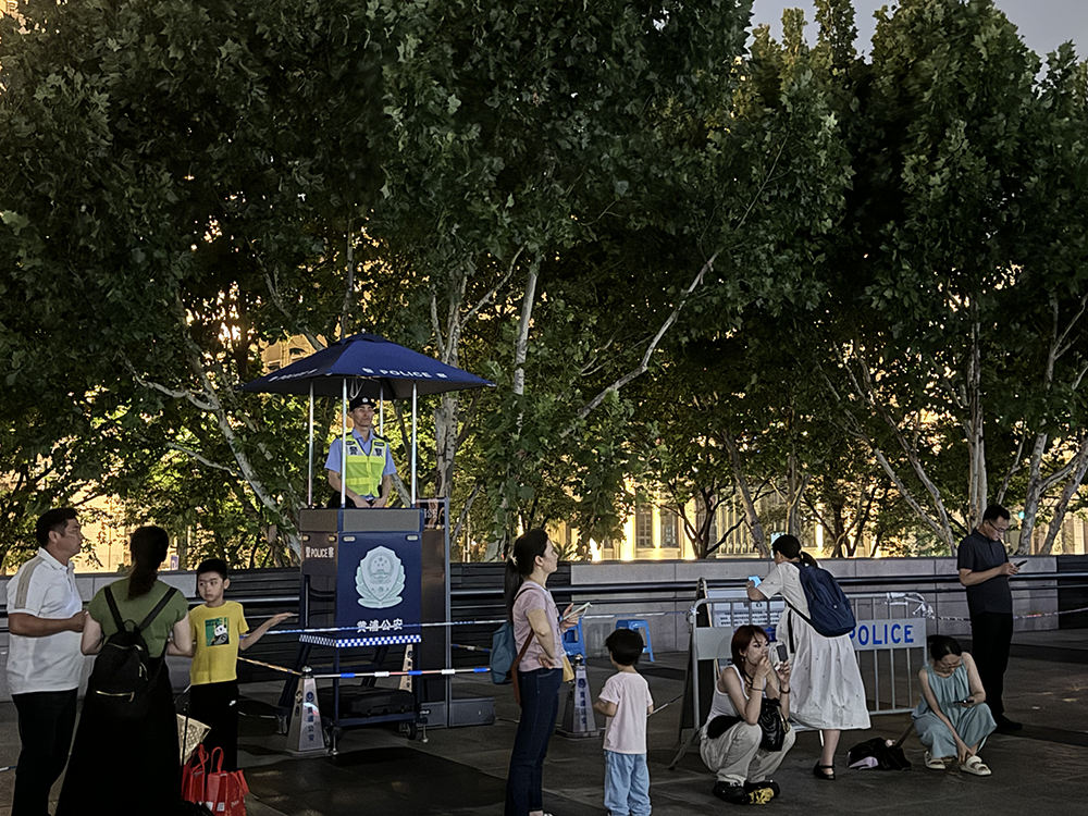 黄浦公安设立了若干个警用瞭望台,派设民警对人流情况进行观察。