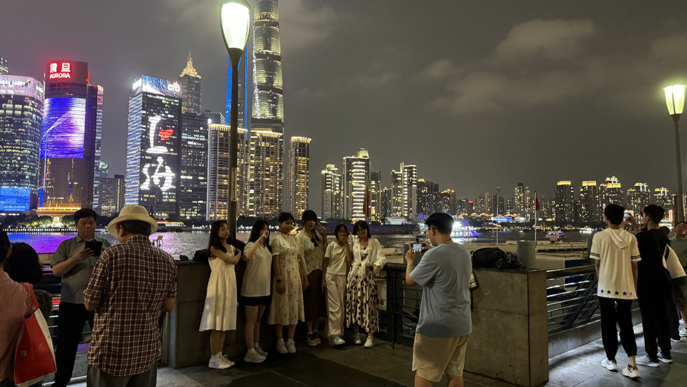 同日20时许,记者再次来到外滩观景平台。夜色中,黄浦江两岸霓虹闪烁,外滩滨水区游人如织。在人流较密集的栏杆处,游客们有序排队等待合适的拍摄点位,在人流较少的地方,游客的拍摄行为在有序的基础上更加自由。至21时许,记者同样未见有“强拍强卖”或无证约拍人员“圈地拍照”的行为,也未见有大型补光灯设备。