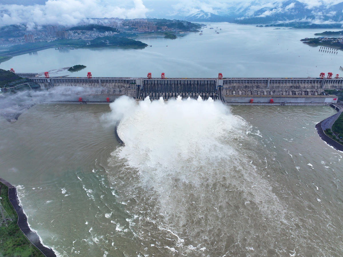 7月13日,极目新闻记者从长江委获悉,当前三峡水库库水位已拦洪运用至历史同期最高水位,当日,长江委调度三峡水库再加开两孔,增至六孔泄洪,出库流量达37000立方米每秒。