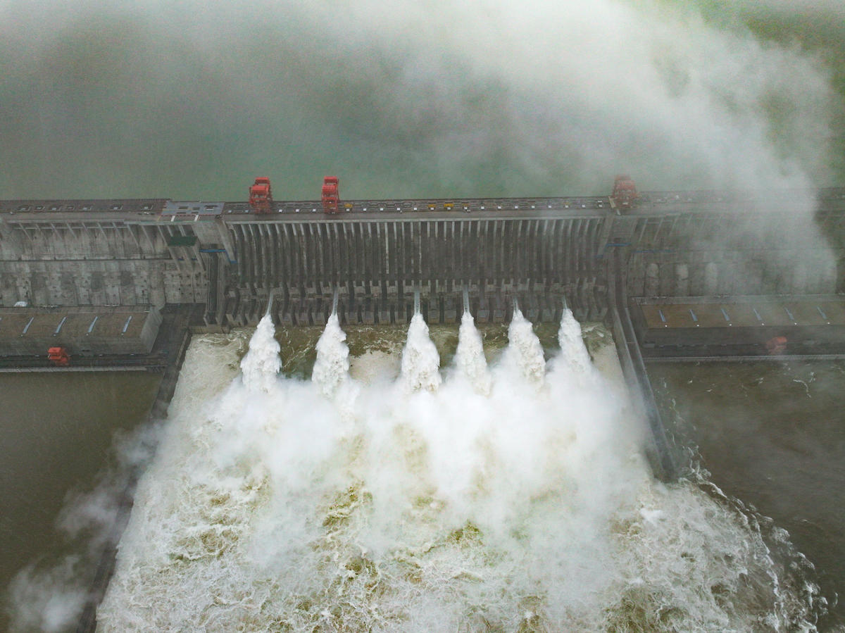 三峡水库今年7月10日首次开闸泄洪,于当日14时、18时各开启1个泄洪孔,7月11日再开一孔,7月12日再开一孔,7月13日再开两孔,目前六孔泄洪。