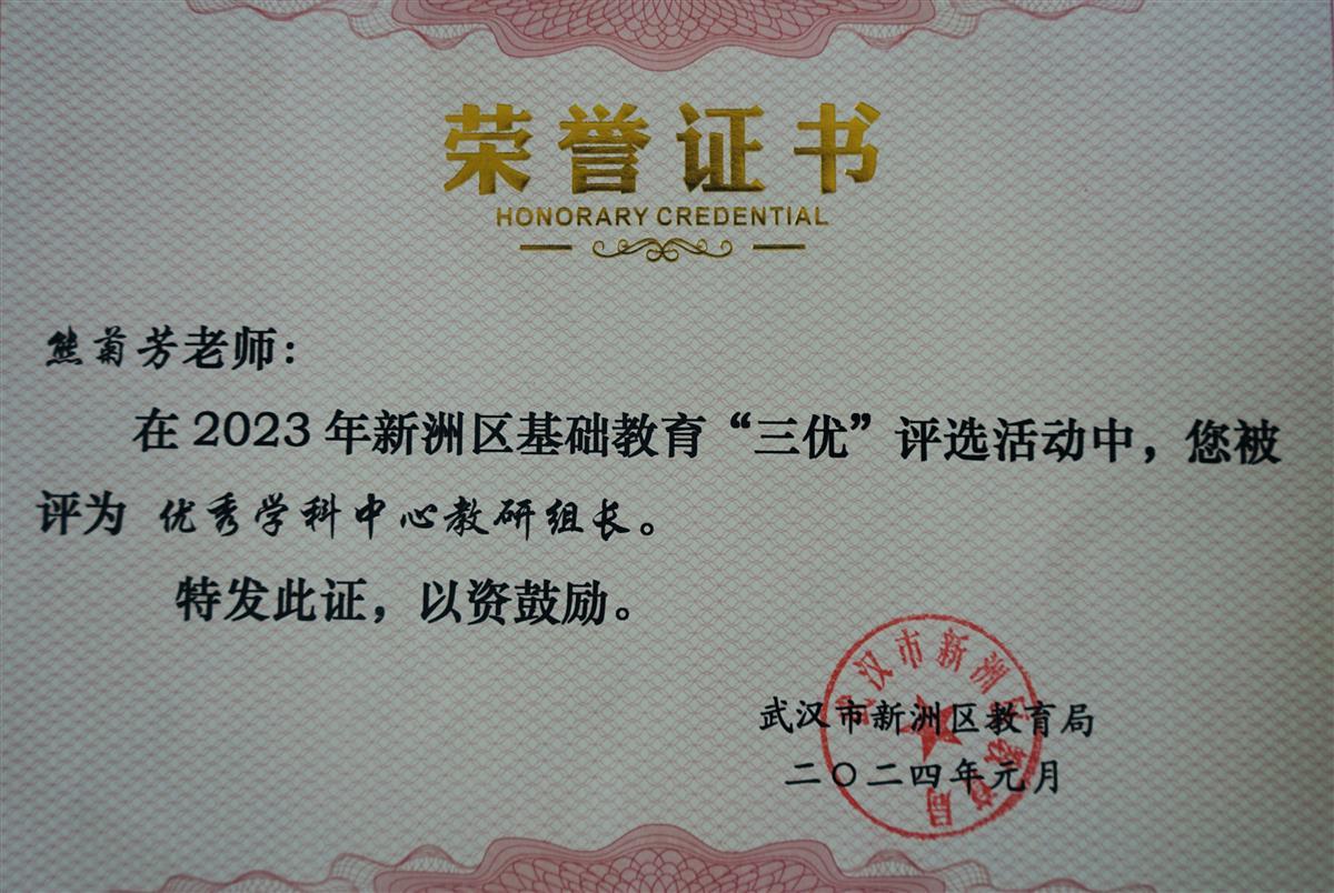 获评优秀学科中心教研组长