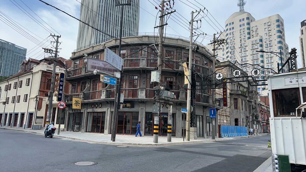 沈斌介绍:“我们把项目、资源整合起来,跟虹口区文旅产业结合在一起进行了创新。乍浦路这条街有百年的历史文化,每栋建筑都有故事、有生命力。现在城市更新,很多老百姓已经搬走了,这些房子怎么再‘活’起来?通过电影IP的传播效应、经济效应,把这个地方盘活。所以我们引进了一些接地气的业态,比如小吃、古董家具、旗袍、中式茶楼等,让这个地方有烟火气。实际上还有一个功能,就是作为影视基地的硬件配套,我们现在把其变成一个场景了,在没有电影拍摄的时候可以运营,有电影拍摄的时候,又摇身一变,成为影视基地。”