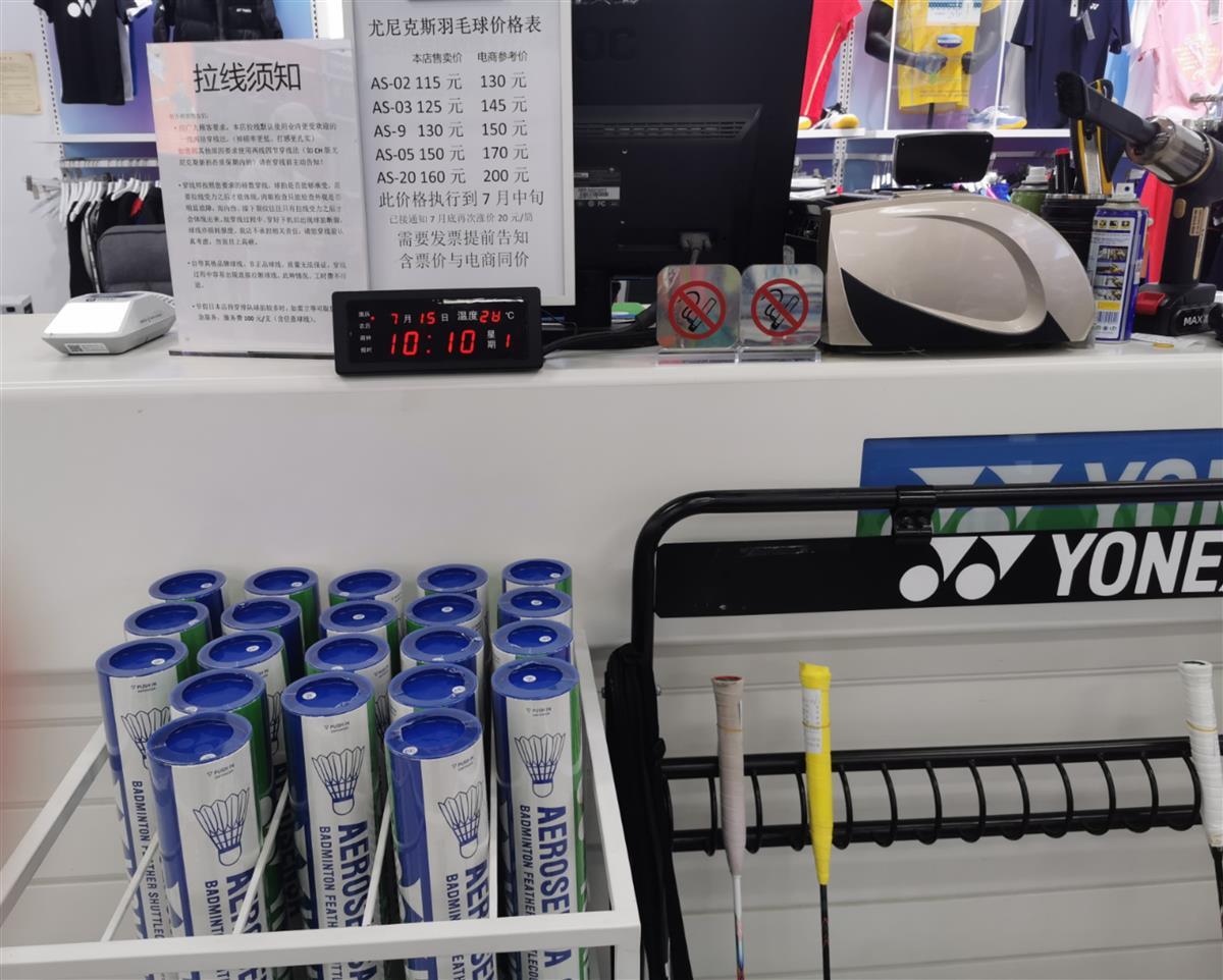 记者在硚口区另一家体育用品专卖店内看到,店内特意在收银台张贴了一张羽毛球价格公示单,公示单上写明该店售卖的尤尼克斯不同型号羽毛球的售价,同时也标注了电商参考价,店内价格比电商参考价低15元至40元。“此价格执行到7月中旬,已接到通知预计7月底再次涨价20元一筒。”公示单末尾写道。
