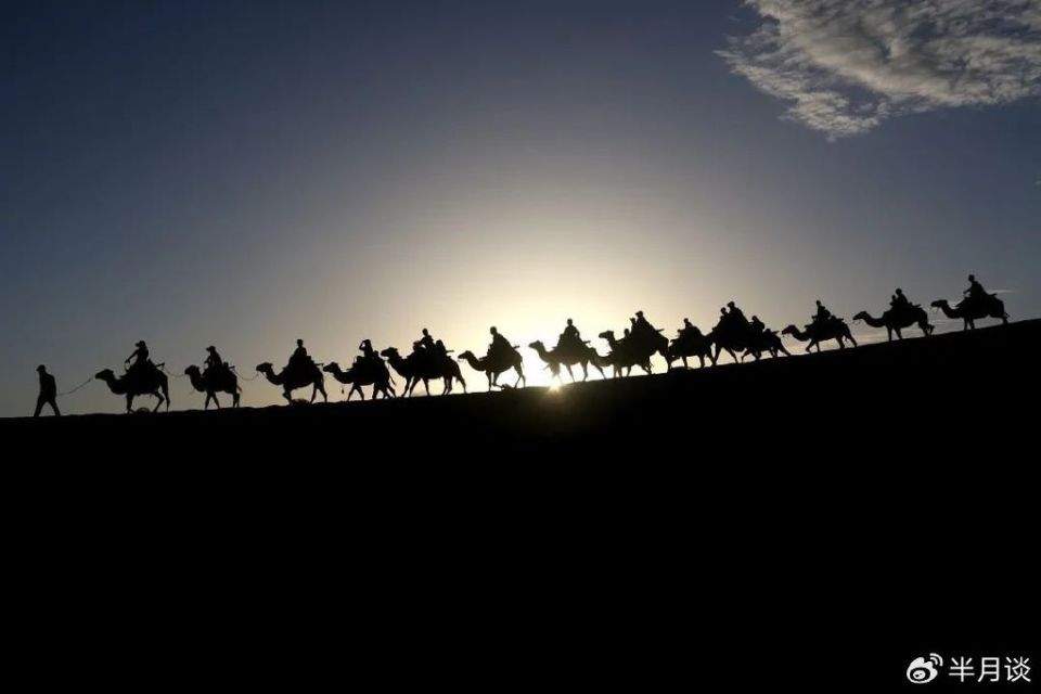 7月14日,游客在甘肃省敦煌市鸣沙山月牙泉景区游览。新华社发(张晓亮摄)
