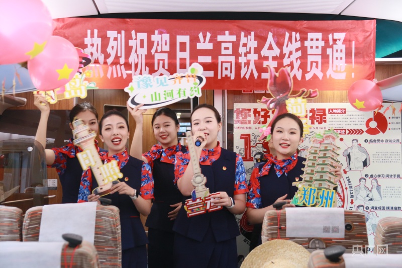 列车工作人员庆祝日兰高铁全线贯通(央广网发赵梦阳摄)