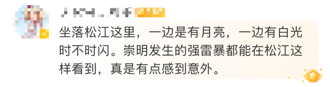 原来昨晚崇明有个很局地的强雷暴云团,因为昨晚上海其它地方无风无雨有云有月,能见度特别好,所以就能看到50公里外的云间闪电,但太远就听不见声音。