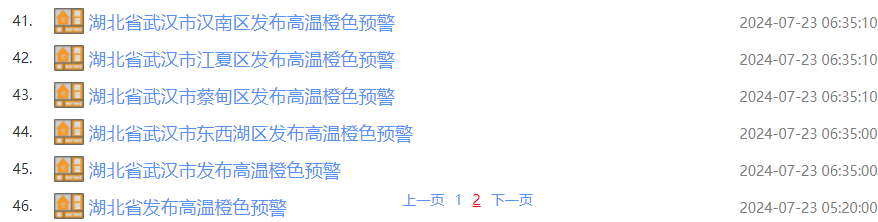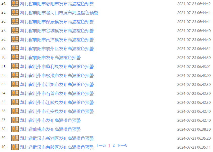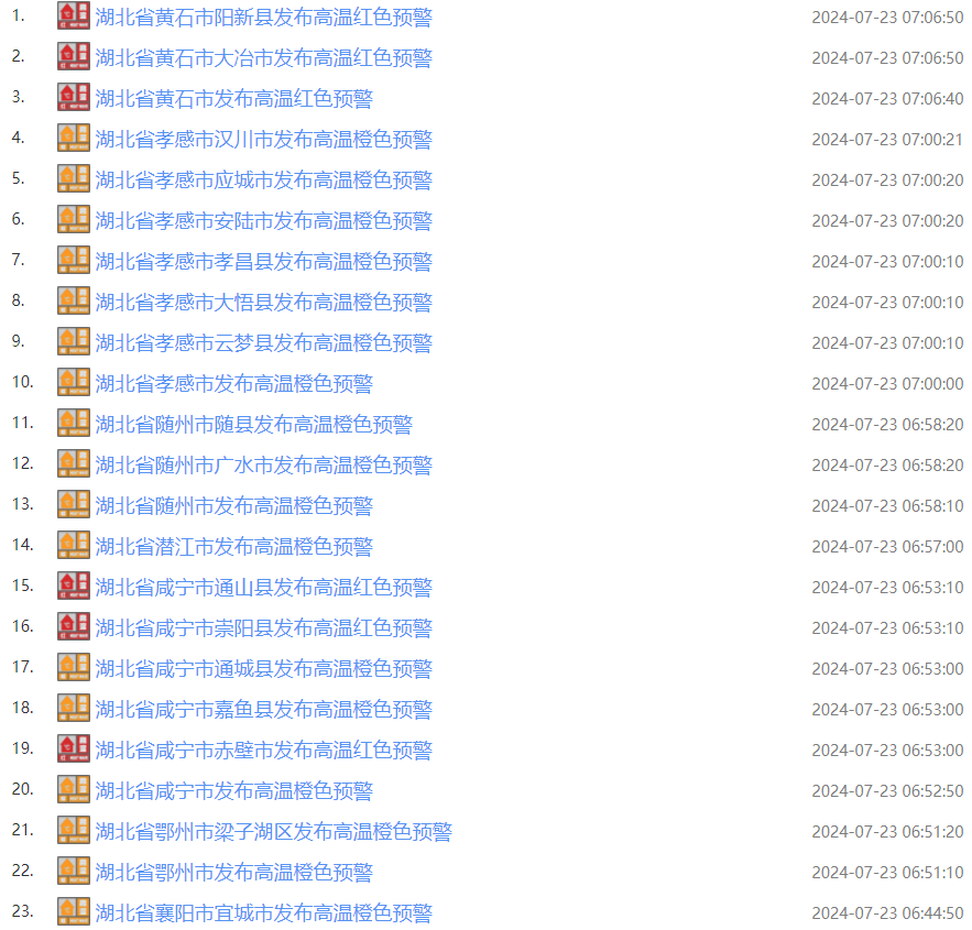 截至23日7时30分,湖北已发布46条高温预警信号。
