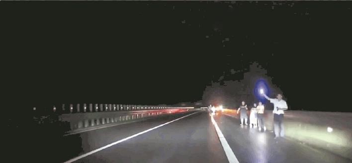 任鑫泉觉得不对劲,接着又看到有人手持强光手电拼命地向他挥舞。他停车询问才知道,前面发生了险情。“我们愣了一下,赶快下车,帮着继续拦后面的车。”任鑫泉说。
