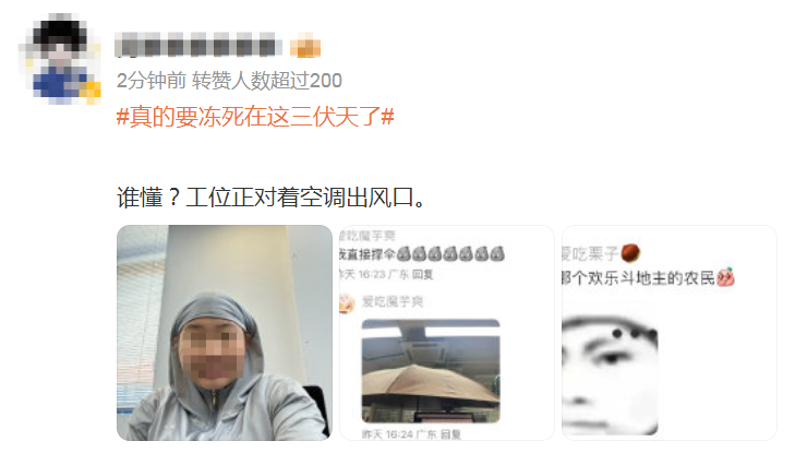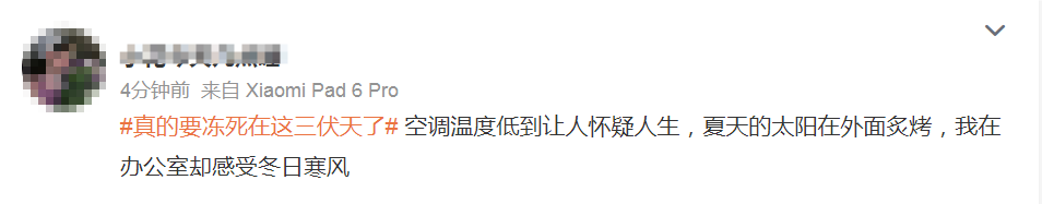 然而,24日,有人却在网上喊出了:真的要冻死在这三伏天了!到底怎么回事!