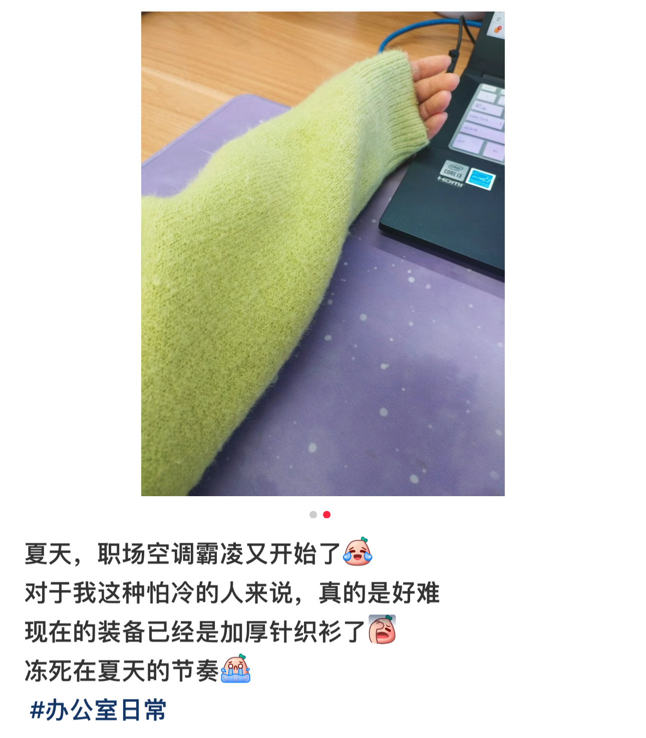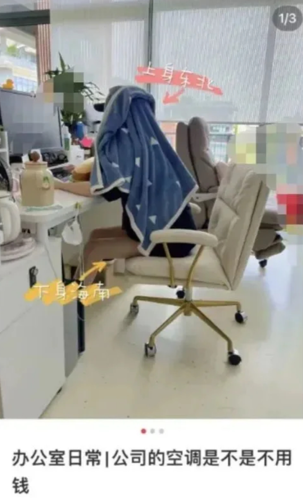 由于办公室温度太低,或工位正对着出风口,许多怕冷打工人在吐槽的同时,也分享了自己的御寒装备。