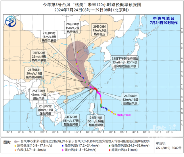 另据中国天气网消息,24日起,东南沿海将遭遇狂风暴雨,之后格美将深入内陆,联手冷空气继续制造大范围强降雨。