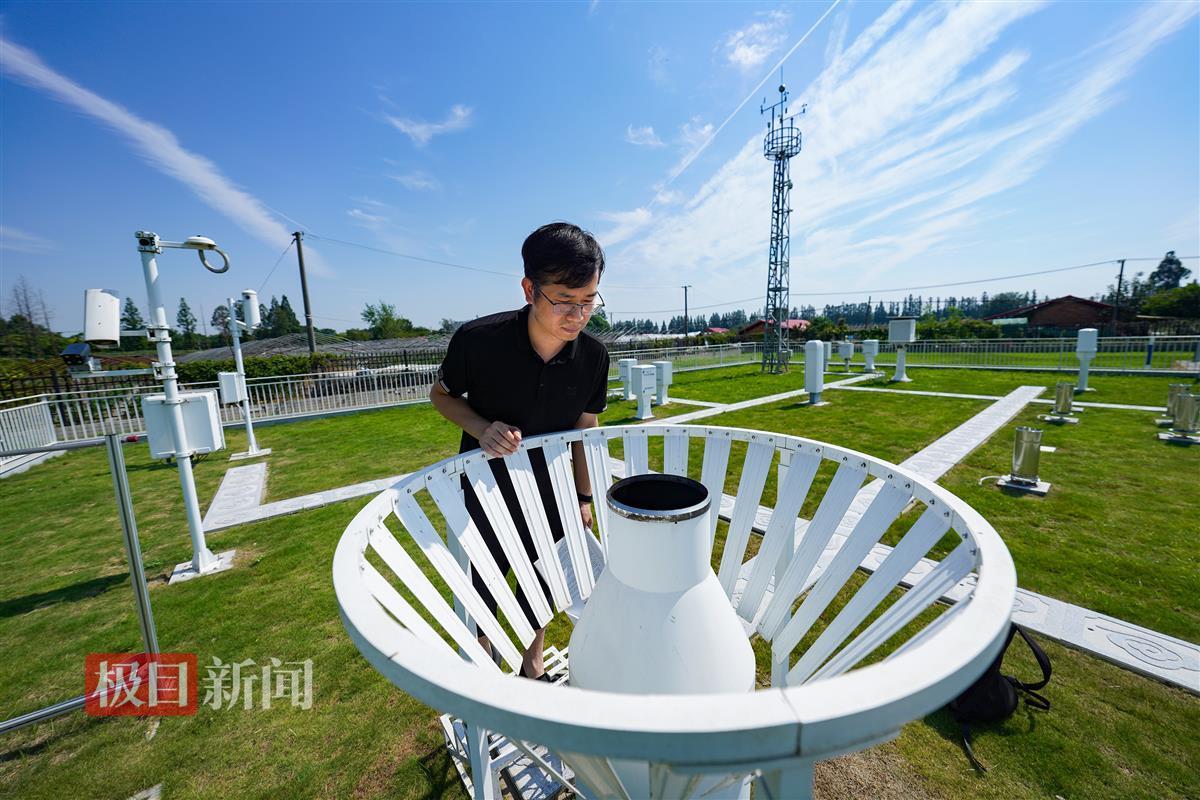 24日上午9时许,记者来到位于东西湖慈惠农场附近的武汉国家基本气象站,四周空旷,没有高楼遮挡,气象站的各种监测设备集结在白色围栏内的一片青草坪上——长35米、宽25米的观测场。