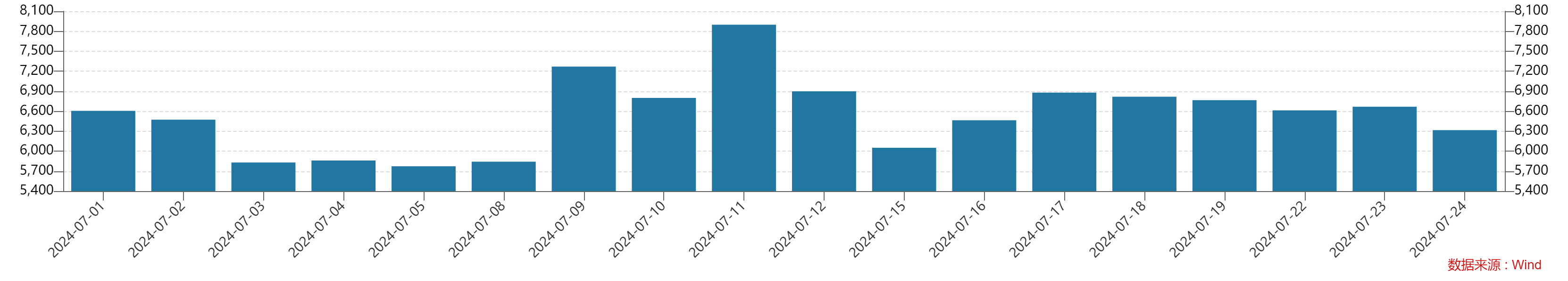 Wind数据显示,从7月12日至今,A股成交额已连续9个交易日维持在6000亿元附近的水平。7月3日至7月8日,A股成交额更是连续维持在5000亿元左右的规模。