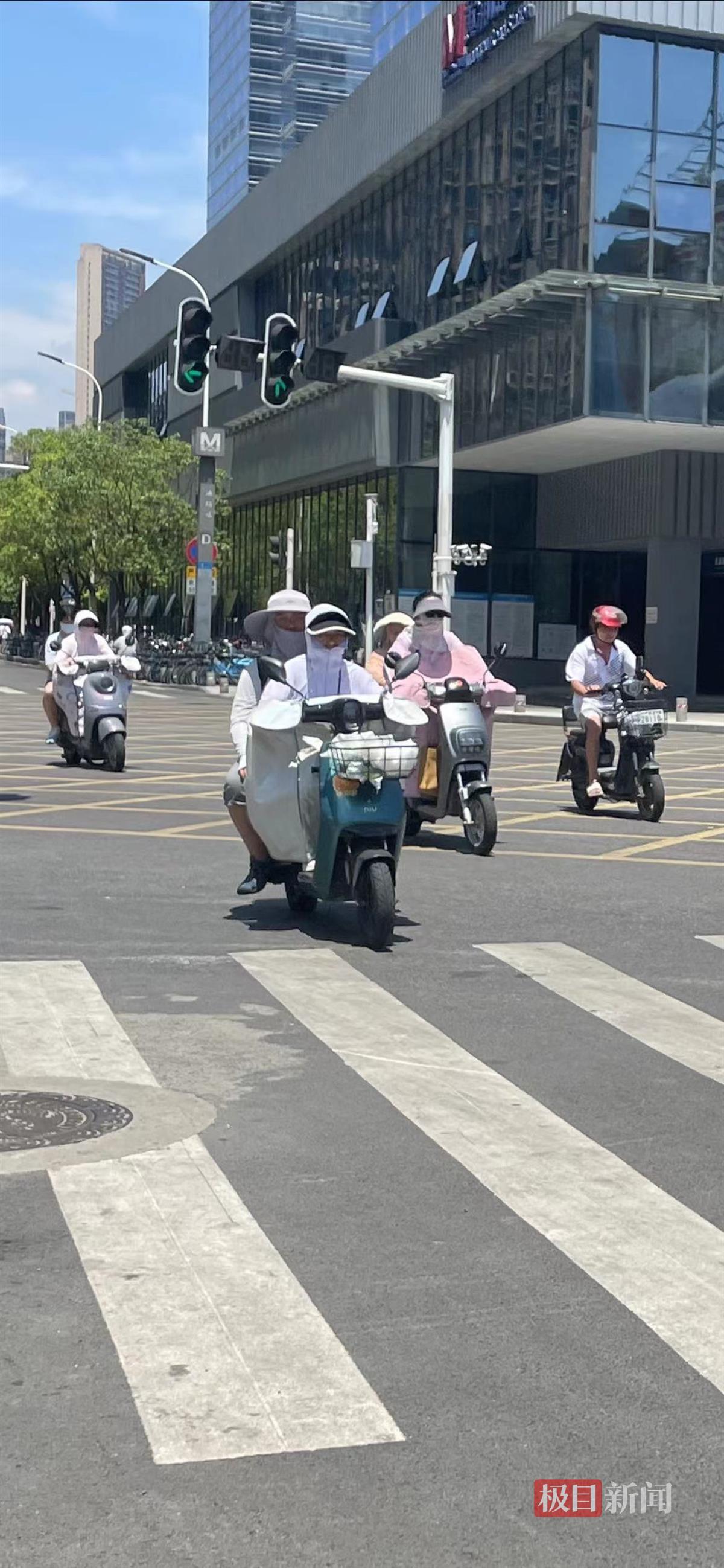 今日13时许,汉口黄浦大街附近,骑行的朋友全方位防晒(极目新闻记者 摄)