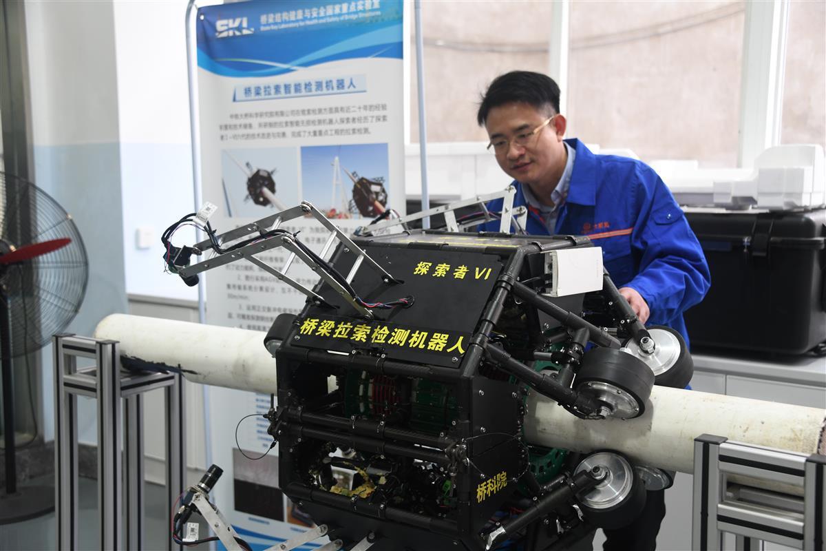 王翔表示,随着更轻量、更安全、更智能的拉索检测机器人爬上桥梁,桥梁“会诊”工作一定会变得越来越轻松,“我和团队将继续聚焦智能建造,突破‘卡脖子’关键核心技术,研发更多的‘硬核’智能设备。”