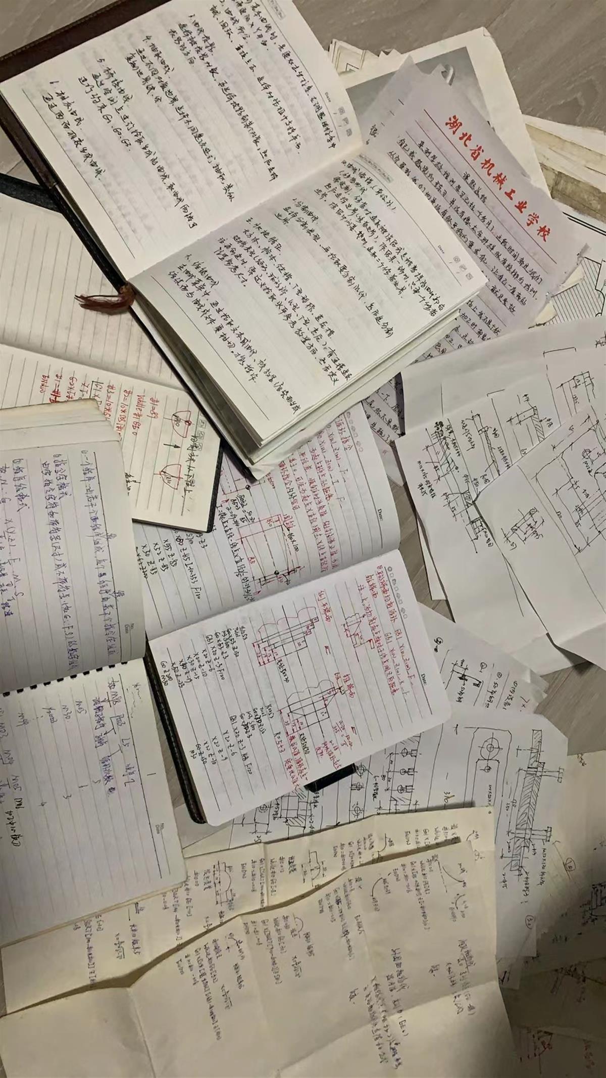 采访时,王有安向记者展示了当时学习的笔记,文字和草图交错,密密麻麻,对照实际技术难题进行总结和摸索,他一一摸索记录。