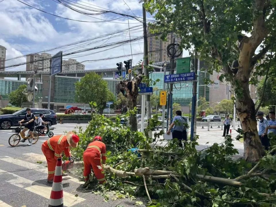 多部门到场以后,康桥镇政府派养护公司及时处理,移走折断的树身和散落的枝叶。
