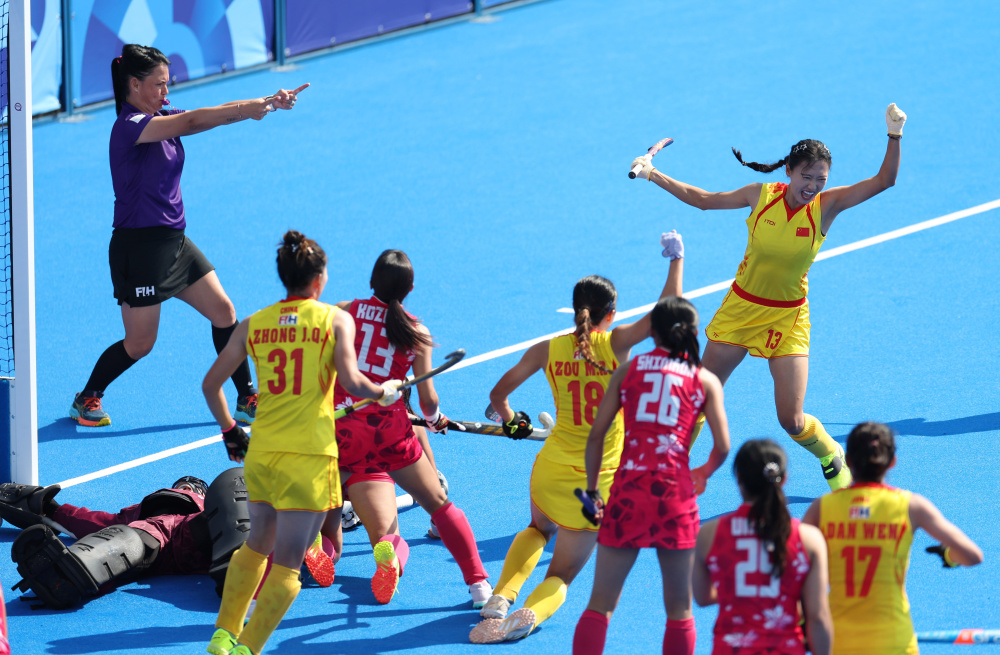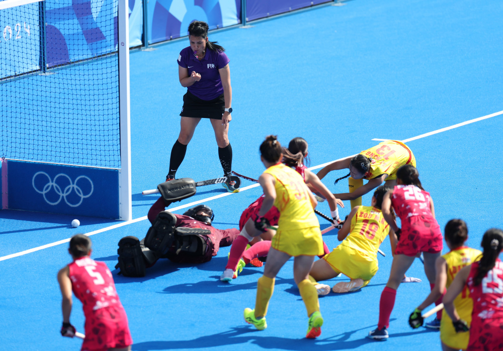 当日,在巴黎奥运会曲棍球女子小组赛A组比赛中,中国队5比0战胜日本队。