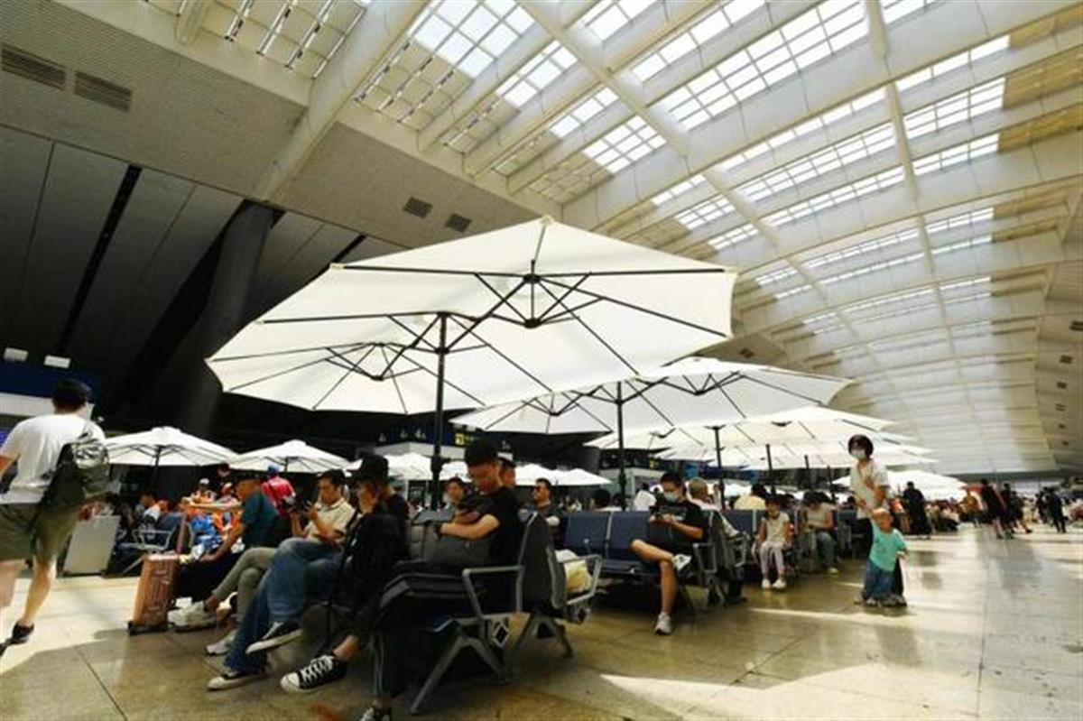 去年夏天,北京南站二层候车大厅中央候车区开出了一朵朵“太阳伞花”,首次设置了百余把遮阳伞为候车旅客遮阳挡光。