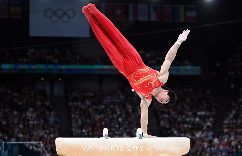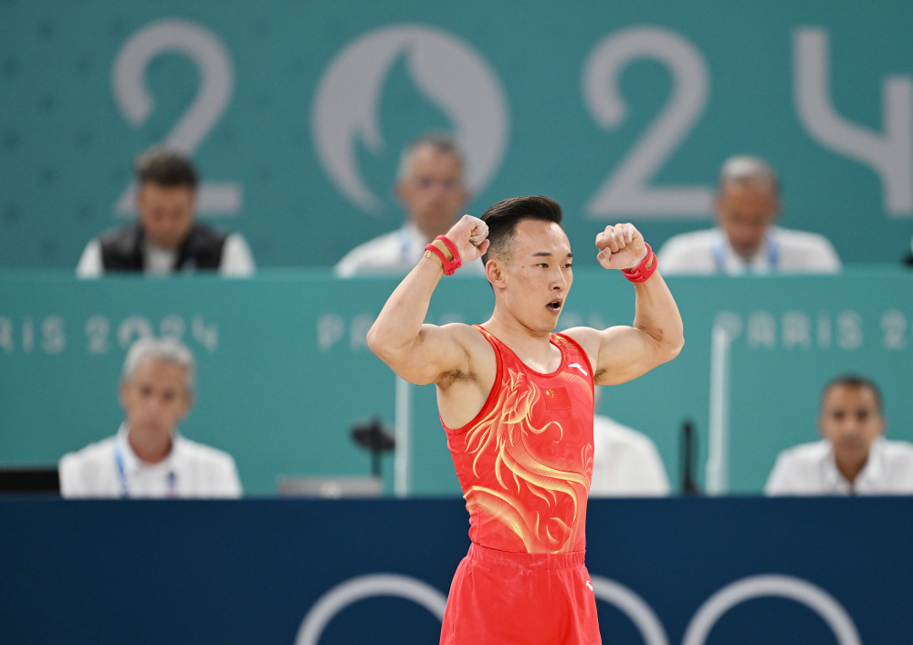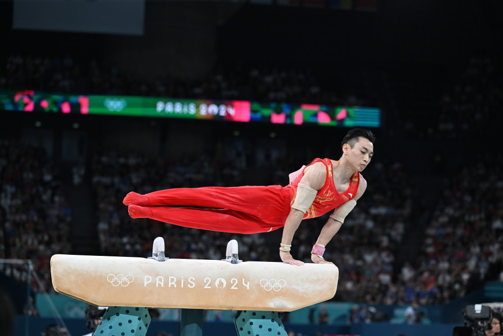 7月29日,中国队选手张博恒在鞍马比赛中。新华社记者 程敏 摄
