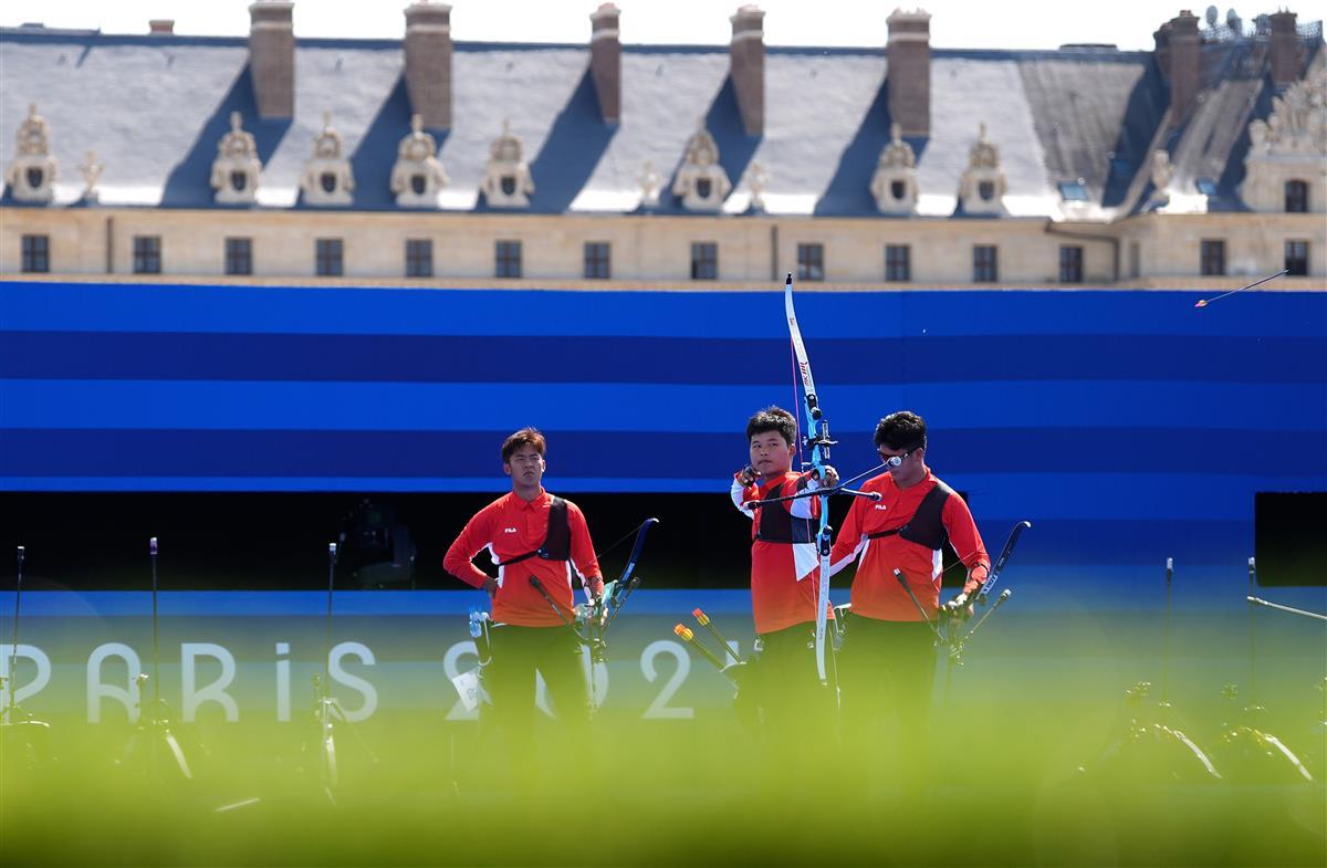 巴黎奥运会射箭项目,是在开幕式前就开始比赛的项目之一。率先进行的男子个人排名赛上,中国队王岩、考文超、李中原,分别打出675环、665环、658环的成绩,团队总分排在第四位,直接获得进入团体四分之一决赛的资格。