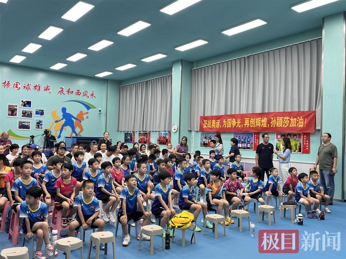 在学校的报告厅,学校教练、师生们也陆续来到现场,他们将一同观看比赛,见证孙颖莎夺金时刻。小队员们身着队服一遍遍喊着:“加油!加油!加油!”