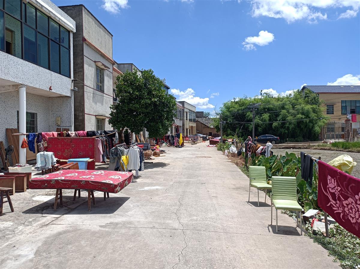 龙潭村柳树湾距离湘潭县城有40多公里,就在涓水边。趁着太阳大,村民贺师傅的妻子搬出家里被洪水打湿的东西,放到门前空地上晾晒。贺师傅家已经被清洗过一遍,但从残存的水痕看得出,家中当时的积水有八九十厘米高。