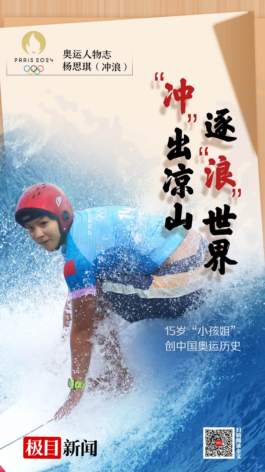 从大凉山到海南,再到相距超过一万公里的塔希提,杨思琪是首位参加奥运会的中国冲浪运动员,实现了中国冲浪运动项目的突破。在参加巴黎奥运会的48名男女冲浪选手中,她是年纪最小的。