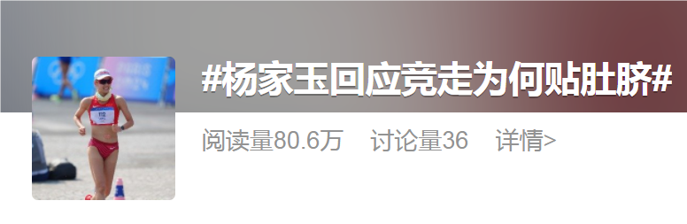 对于,杨家玉竞走为何贴肚挤的话题也火了起来。