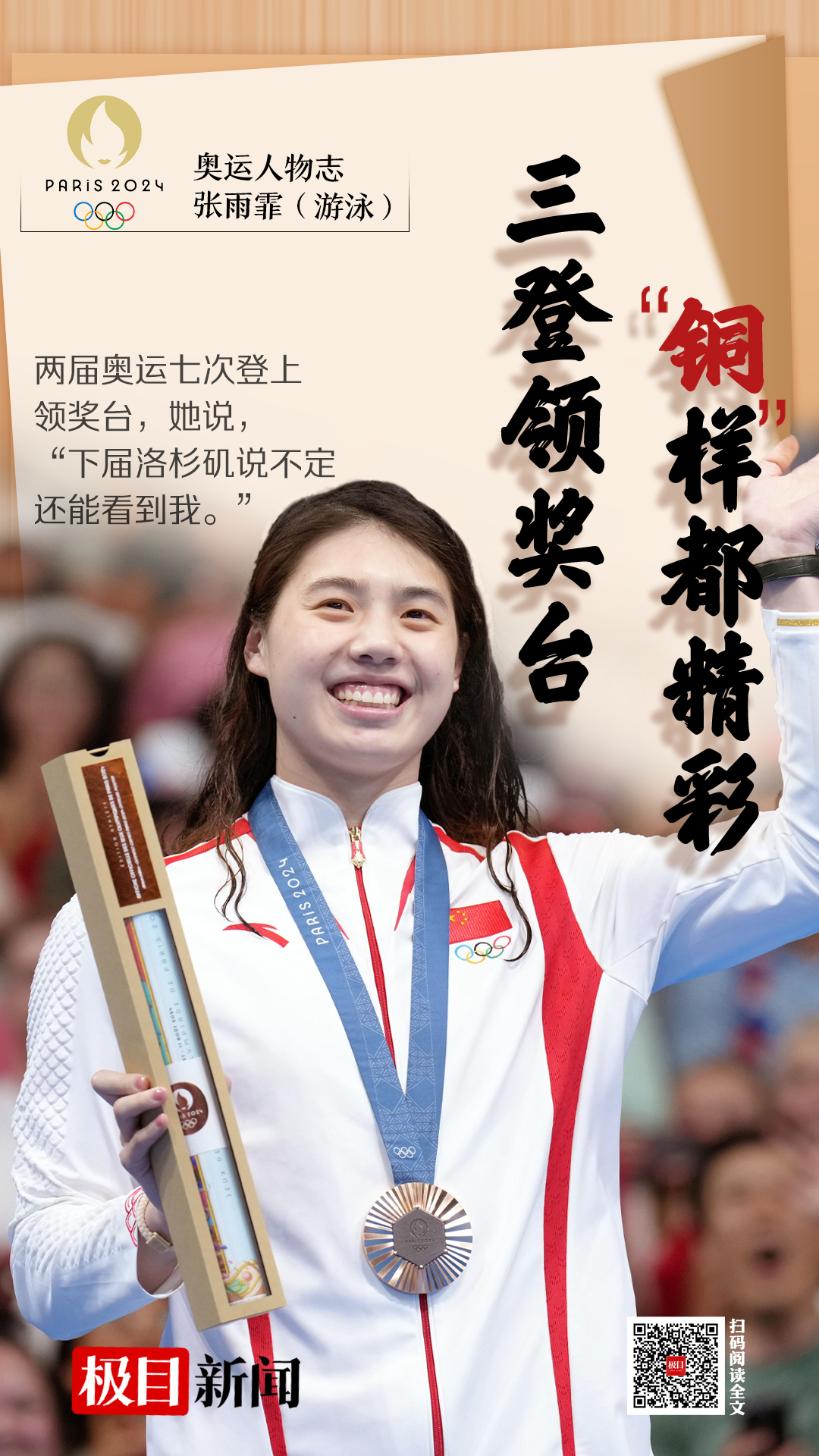 本次再摘两枚奖牌,标志着“劳模”张雨霏在本届奥运会参加的6个单项比赛均站上领奖台。张雨霏累计获得10枚奥运奖牌,是目前中国游泳队获得奥运奖牌数最多的运动员。