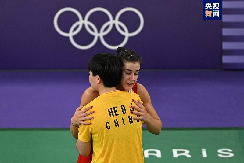 在羽毛球女子单打半决赛中,西班牙选手马林因伤退赛,中国选手何冰娇晋级决赛。在马林受伤的第一时间,何冰娇拥抱对手,给予对手关心↓