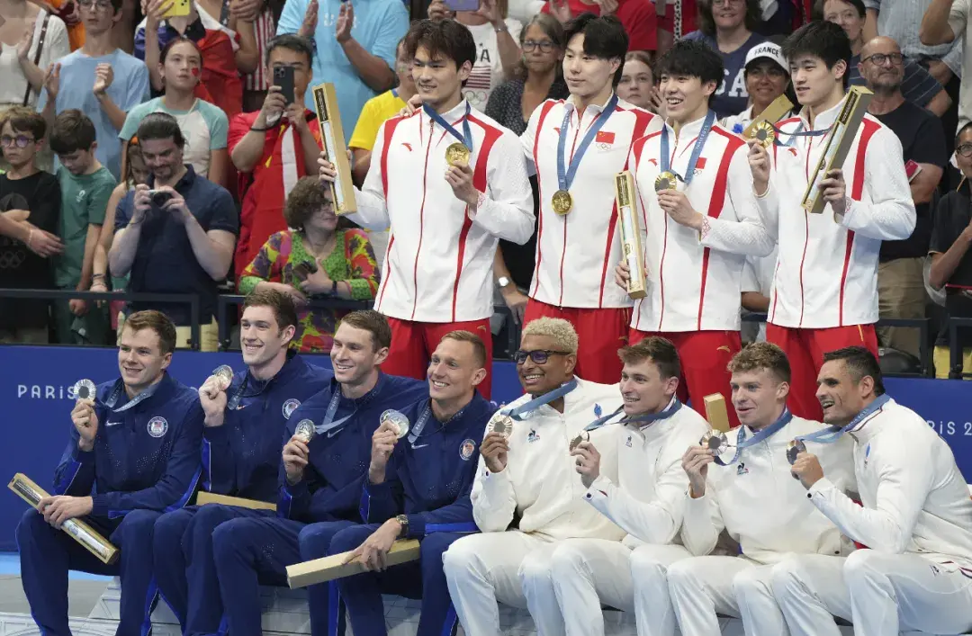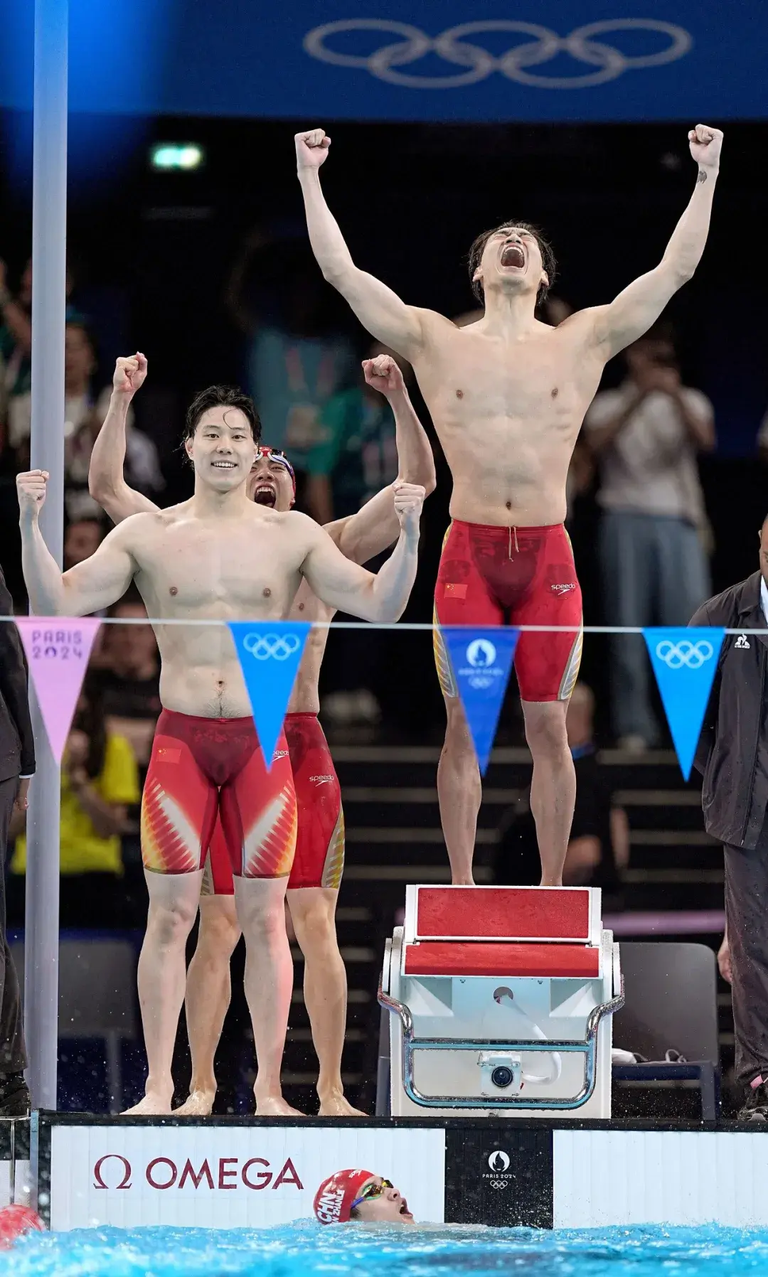 巴黎时间8月4日19:20,中国游泳进入一个历史时刻:在巴黎奥运会最后一个比赛日的男子4×100米混合泳接力决赛中,中国队绝地反击,以3分27秒46首先触壁,拿到这枚沉甸甸的奥运金牌,结束了美国游泳在这个项目上长达40年的统治。
