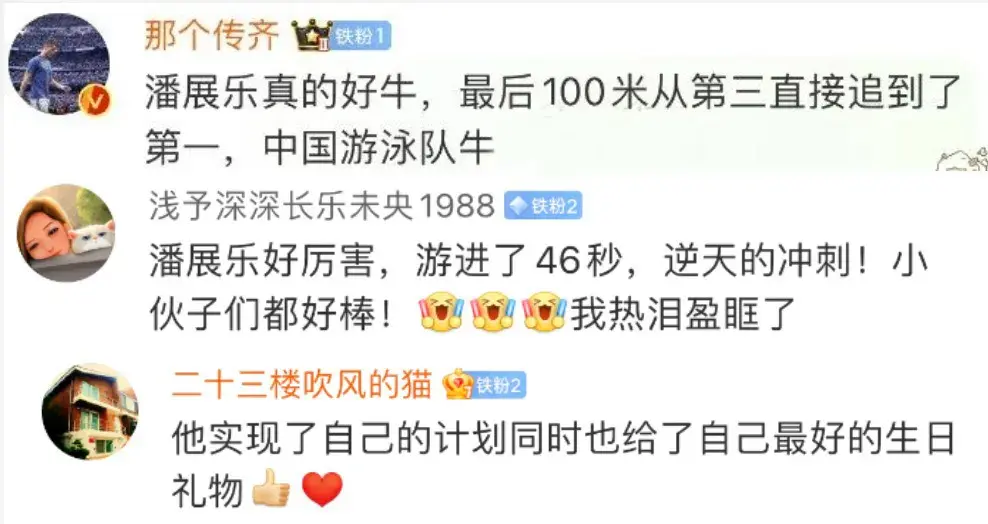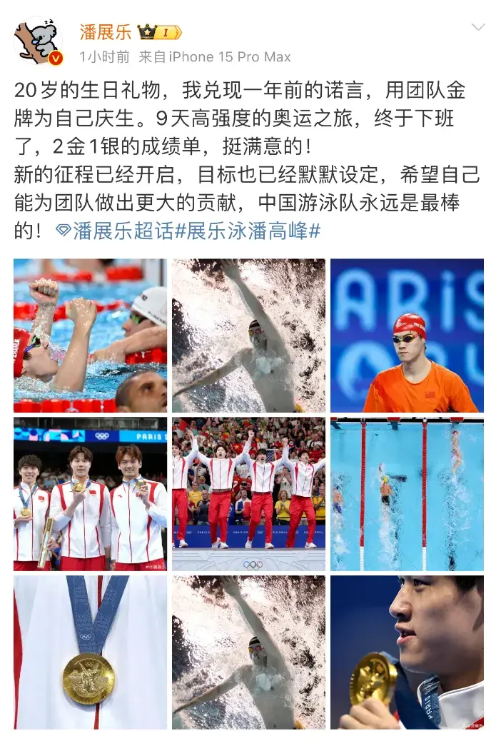 在中国队登上本场决赛前的这套阵容里,有一名新科自由泳奥运冠军潘展乐,两名世界冠军仰泳徐嘉余和蛙泳覃海洋,其中潘展乐和覃海洋都各自手握一项世界纪录。4分钟后,中国游泳又多了4名奥运冠军(预赛王长浩),这样的阵容厚度 ,本身就是中国游泳身处历史鼎盛时期的体现。